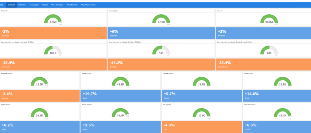 Bari, Italy; Chania, Greece; and Jaén, Spain. These are the three most representative olive oil markets of the European Union. About 70% of the EU’s olive oil is produced here, so their prices, particularly those of Spain, have an impact on other producing countries, and mainly on the oils they