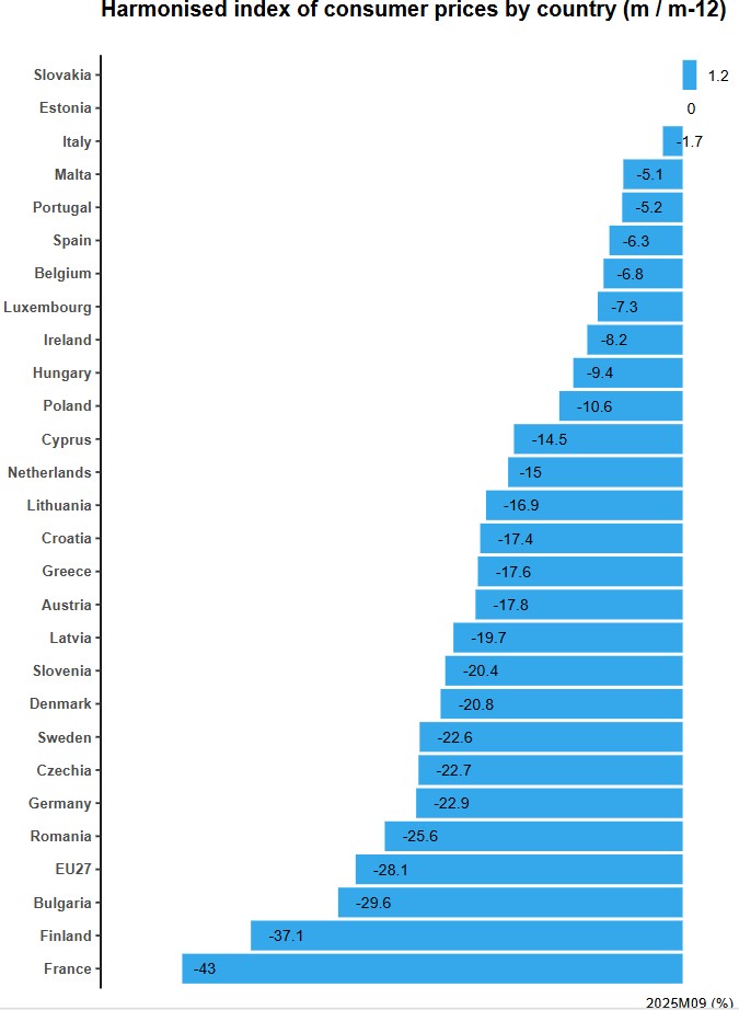 By country, the largest decreases were recorded in France, Finland and Bulgaria.